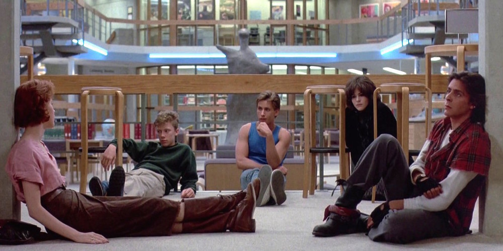 Early on a Saturday morning — “March 24, 1984” —parents drop off their budding adults at suburban Illinois’s Shermer High School where each student will spend nine hours sitting in an open-air library “pondering the error of their ways.” Their assignment is to write a thousand-word essay describing who they think they are. Their unified literary response bookends the story.