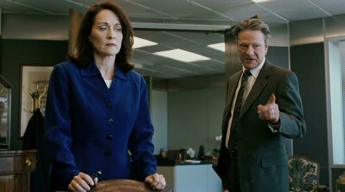 Though oddly ignored by the screenwriters, Chris Cooper's Phil Woodward is the most interesting character. Tough talking Phil tells his friend, "I won't let the bastards just kick me out after 30 years. I'll take an AK-47 to this fucking place first." He represents the desperation felt across the country by the one out of five workers who have lost their jobs.