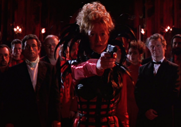 Greenaway lets the audience know what it’s in for during a tense opening sequence. Albert dislodges the owner of a haute cuisine restaurant named Le Hollandaise. The restaurant’s proprietor “Roy”–note the allusion to a “king” — hasn’t been keeping up on his protection payments to Albert, a mean-spirited mob boss with a taste for fine dishes he can barely pronounce.