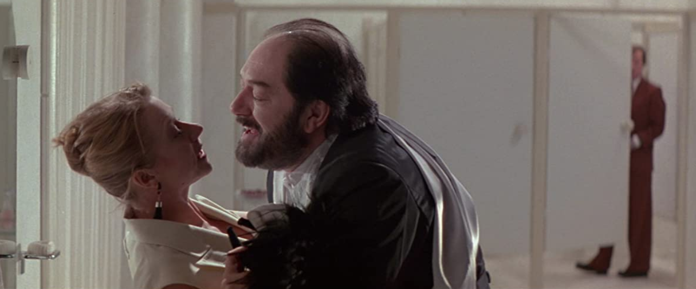 Greenaway conceived his film as a play, “a performance,” with which the audience is meant to engage. His strict adherence to formal laws of theatrical dramaturgy, including proscenium staging, is attenuated by a non-stop assault of physical and verbal violence from the film’s loathsome antagonist Albert Spica. In the role of Albert, Michael Gambon embodies his boorish character with a virulent toxicity of epic scale.