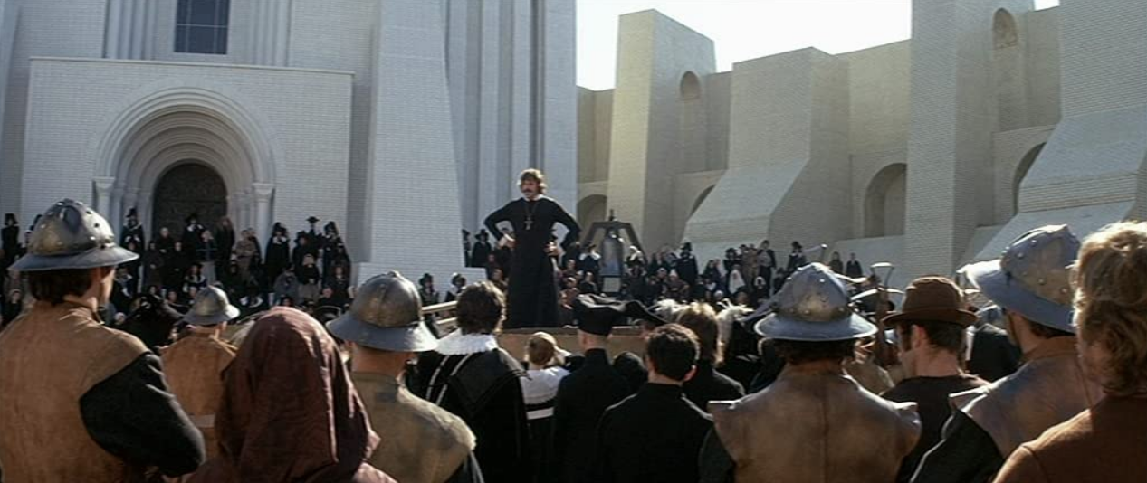 Sister Jeanne’s idolizing of Grandier involves an all-encompassing sexual preoccupation that turns into the fierce rejection of a [imagined] lover scorned. Sister Jeanne and her flock present a perfect Achilles heel for military taskmaster Baron Jean de Laubardemont to exploit as possessed victims of Satan, in order to infiltrate and take over the city. Laubardemont chomps at the bit, wanting nothing more than to demolish the city’s protective walls.