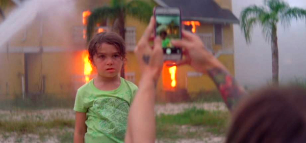 After losing her stripper job, tough-as-nails Halley (Bria Vinaite) hawks cheap perfume in upscale hotel parking lots with her six-year-old daughter Moonie (Brooklynn Prince) in tow. Moonie is tough too. She runs free around the suburban area, stirring up troubles big and small with her similarly aged pals Jancey (Valeria Cotto) and Scooty (Christopher Rivera).