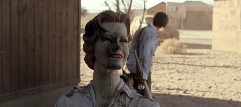 The disturbing collage of images creates an atmosphere of government consummated negligence that puts the viewer on an uncomfortably intimate footing with the grossly misshapen people who later wait in the arid hills to prey on whoever sets foot inside their desolate domain.