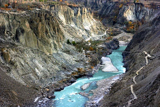 The Gilgit next becomes the Indus River, home to one of the planet’s great ancient civilizations, and the views alternate wildly between lush green valleys and bleak chalky rocks tumbling off canyon after canyon into oblivion. It’s astonishing, but after a while sensory overload sets in; it’s the kind of experience best digested after the fact.