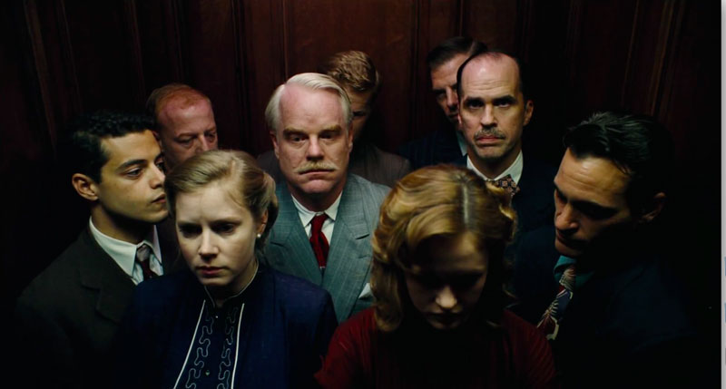 In San Francisco, Freddie stumbles onto a moored yacht inhabited by L. Ron Hubbard alter ego Lancaster Dodd (Philip Seymour Hoffman). The boat is headed for New York via the Panama Canal. Onboard are Dodd’s group of faceless cult followers and his loyal collaborator wife Peggy (Amy Adams), and two young adult sons — probably from another marriage. Dodd catches Freddie with a freshly made concoction of questionable hooch — Freddie poisoned some poor soul with the last batch he made while working on a farm picking cabbages. Dodd befriends the helpless scoundrel.