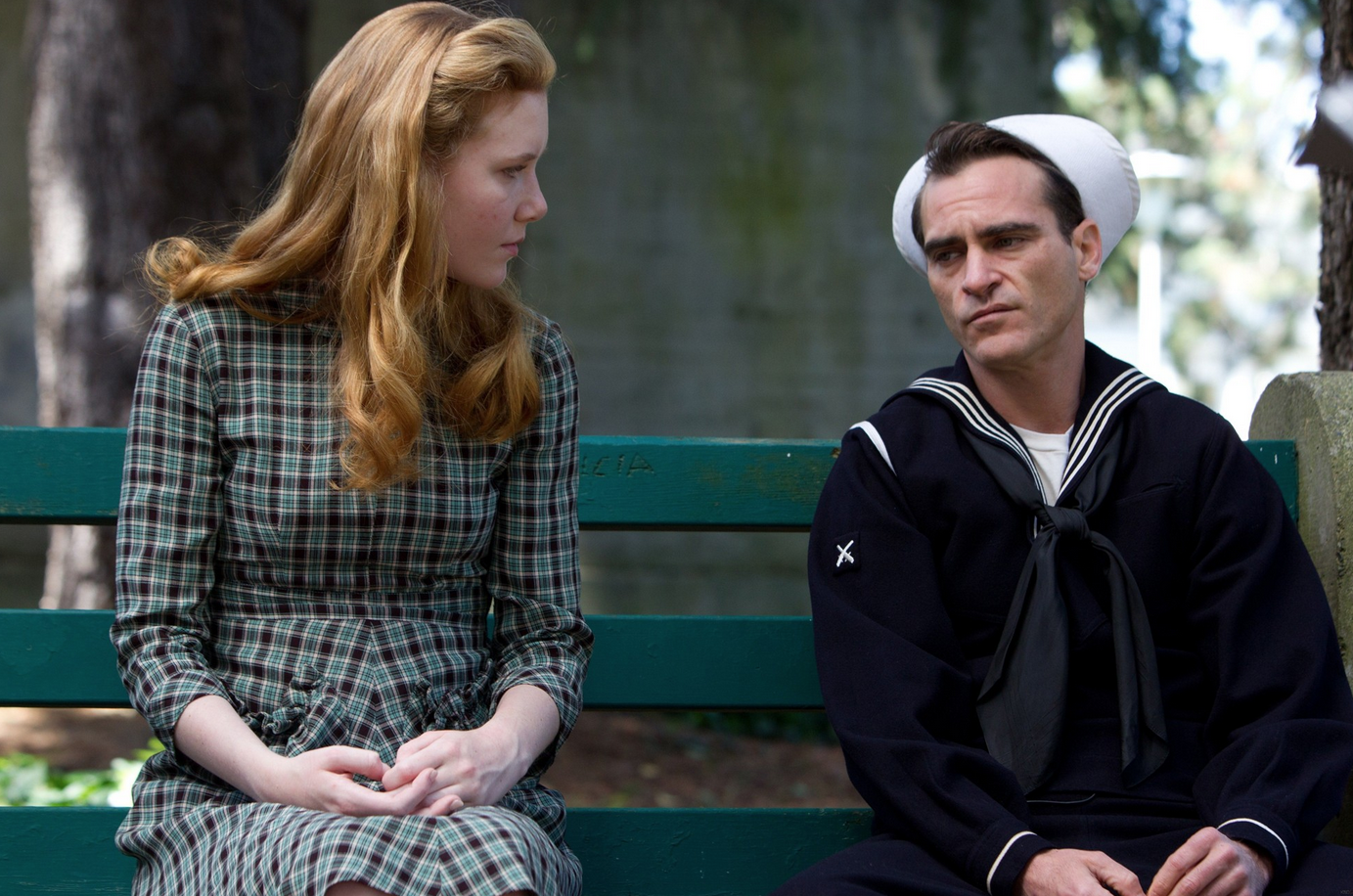 Dodd appreciates Freddie’s animalistic nature and utter desperation. He may harbor homosexual feelings for the wacked-out stowaway. Freddie is a perfect test subject for Dodd to try out his “process,” a ritualized survey of repeated questions. “Have you ever slept with a member of your family?” Dodd asks. For Freddie, the answer is yes.