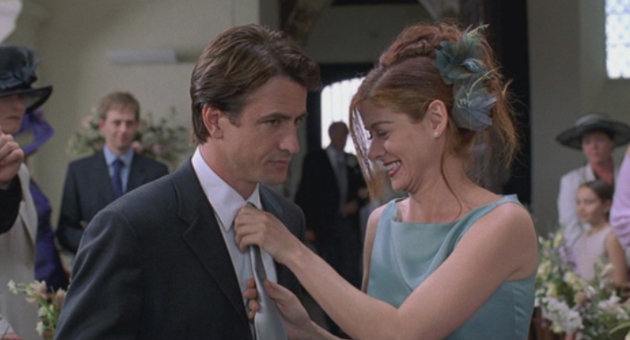 One-note television actress Debra Messing plays Kat Ellis, an emotional wreck who takes it upon herself to spend $6000 (taken from her 401k) to pay an escort (Dermot Mulroney) to accompany her to her sister’s wedding near her parent’s home in London.