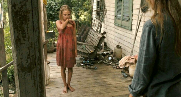 An abandoned little blonde girl/devil doll named Loren (AnnaSophia Robb) runs aimlessly through the area’s swampy back woods after being blamed by townsfolk for the death of a boy at a river’s edge before it turned crimson red.