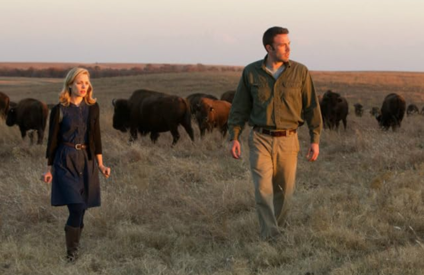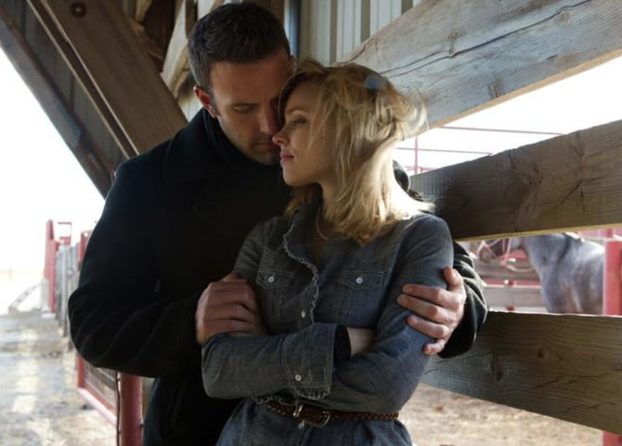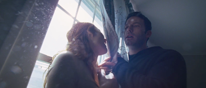 In Paris, Neil (Ben Affleck) courts Marina (Olga Kurylenko), a sensuous Ukrainian woman with a ten-year-old daughter named Tatiana. The Eiffel Tower, the gardens at Versailles, and Mont Saint-Michele make for plenty of postcard-perfect compositions via Malick’s handheld camera. Dialogue is sparse, very sparse. Malick flits between indulgent shots of streaming sunlight on suburban landscapes to fill in copious narrative blanks in his script.
