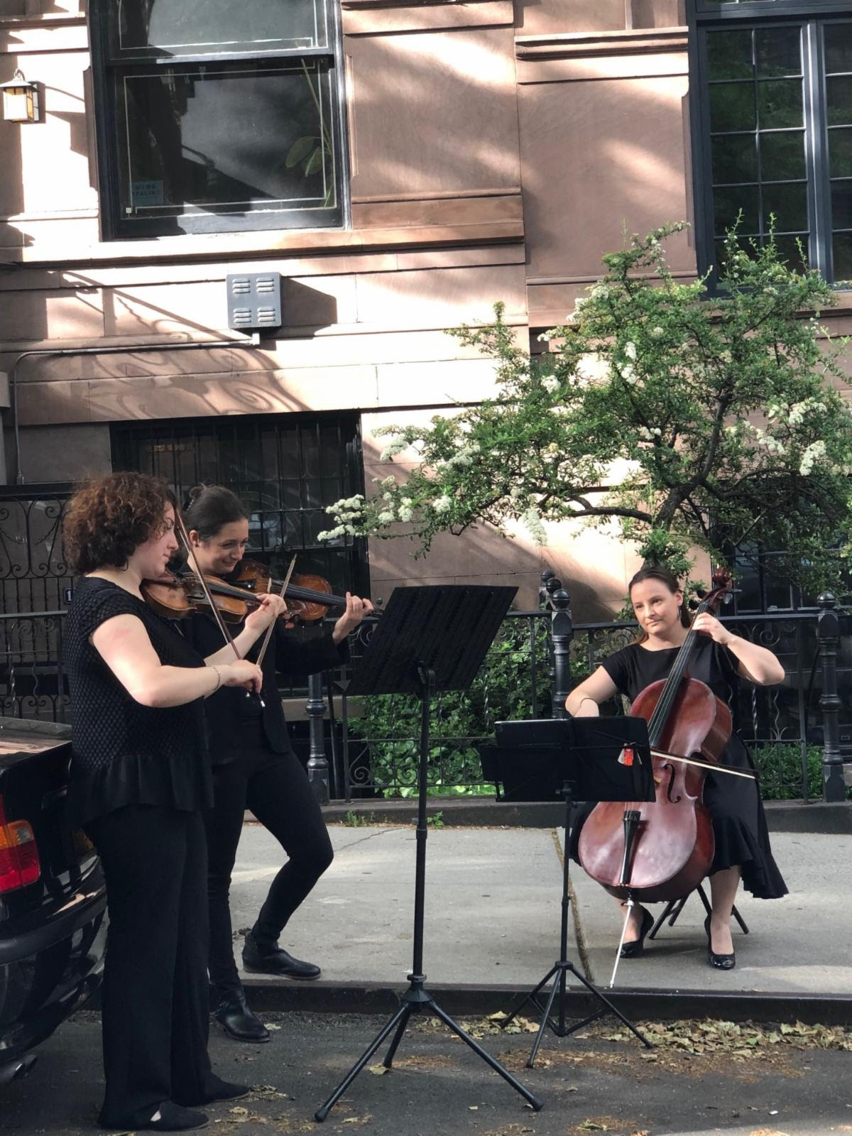 Street musicians play in Carnegie Hill.