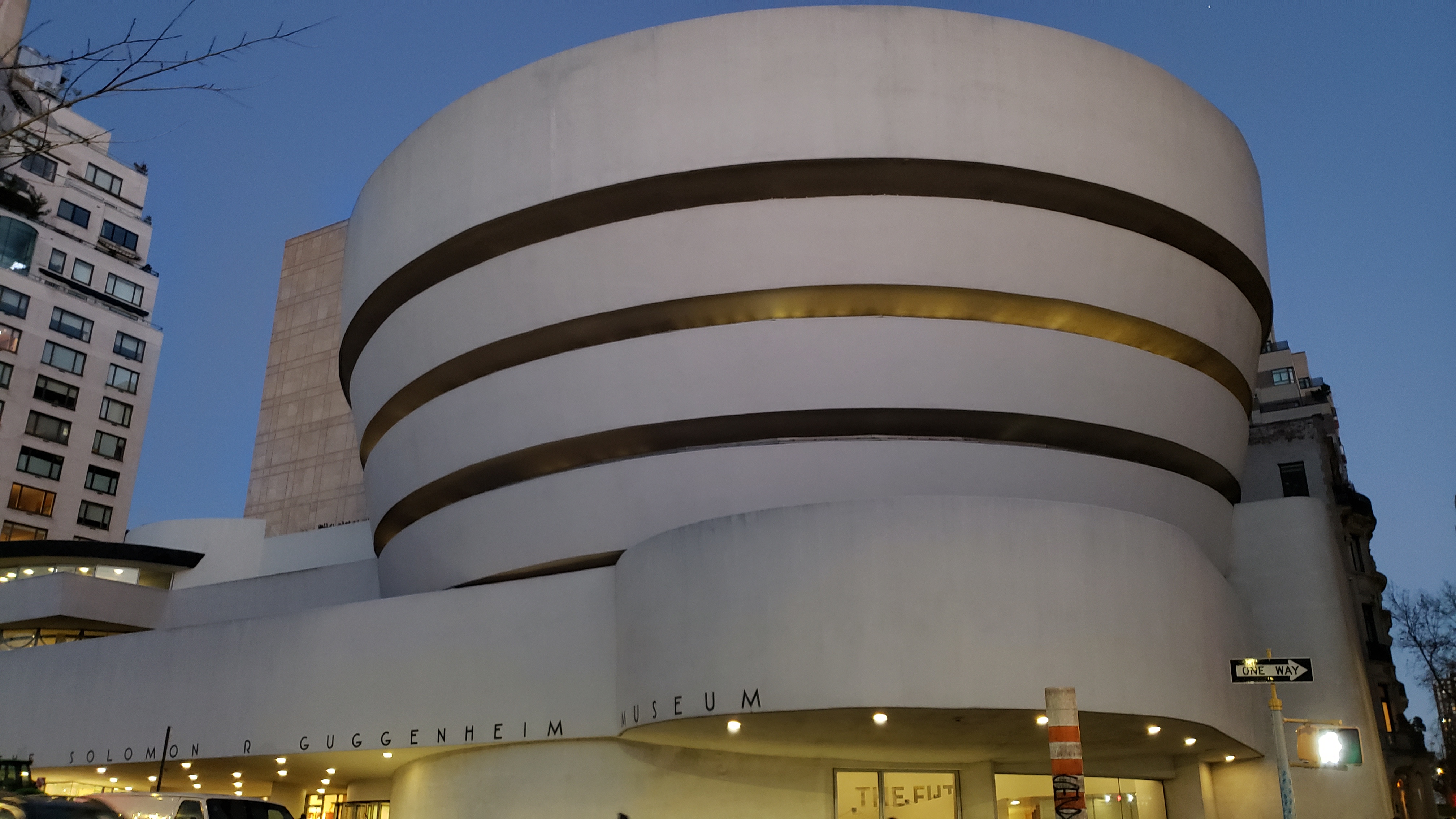 The Solomon R. Guggenheim Museum at dusk.