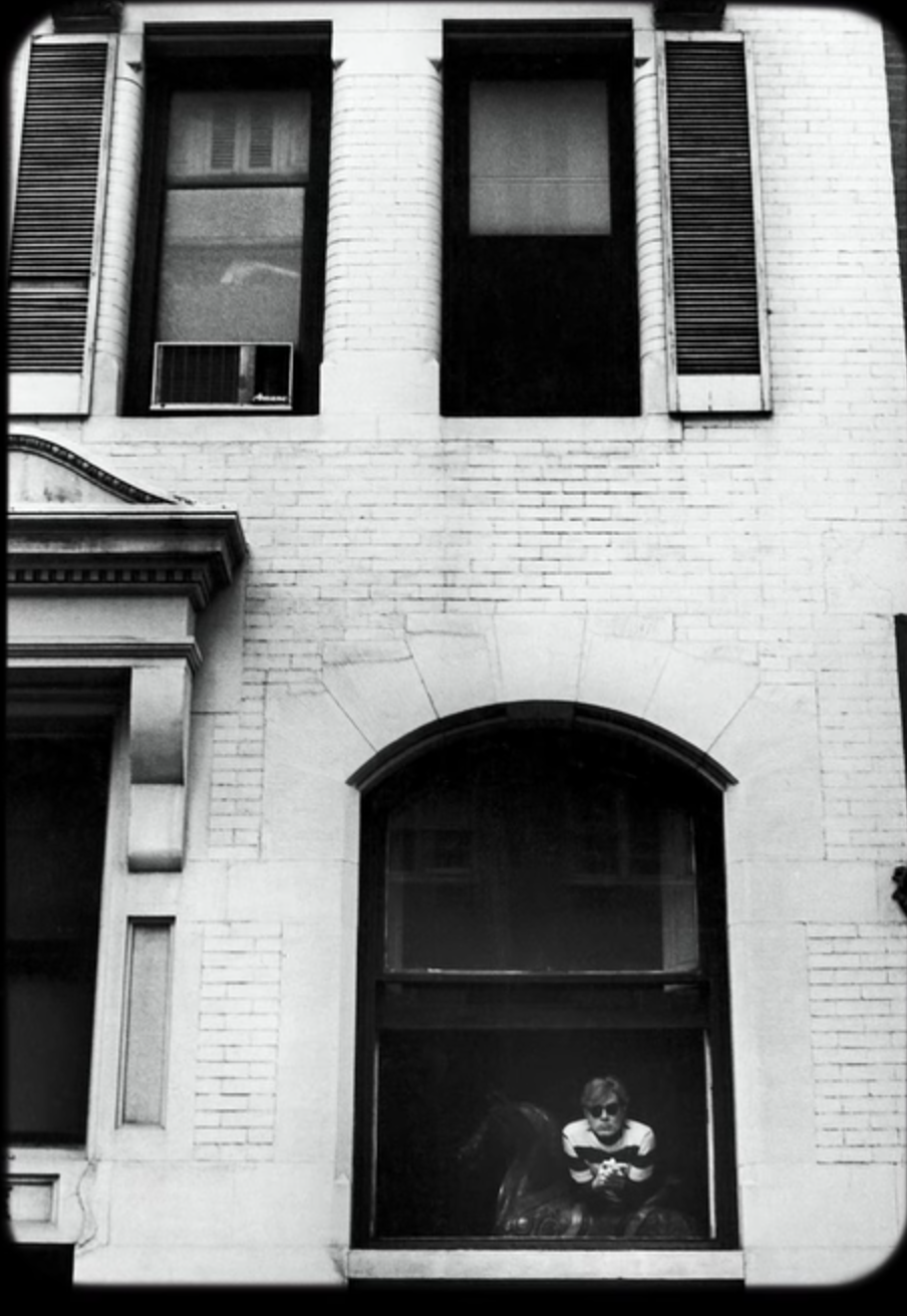 Andy Warhol in the window of his Lexington Avenue apartment.