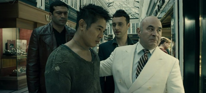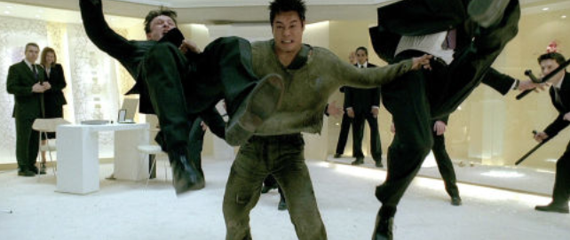 Before wearing out his welcome with fight choreographer Yuen Wo-ping, who had just finished work on “Kill Bill,” director Louis Leterrier defined the film’s opening fight sequence using plastic dolls to communicate the action to Wo-ping. What the audience sees in that initial conflict is the most ferocious fight sequence Jet Li has ever filmed. Li uses fast repeated right fist punches that send tremors of inertia through the audience. Danny liberally uses head-butts, and tears out his subject’s hair with a ferocity that speaks directly to the seven months the action star spent creating the character.